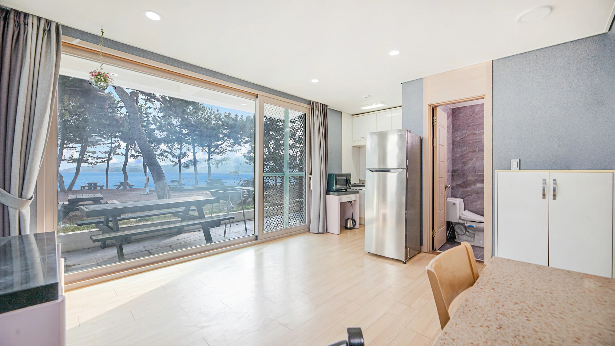 - 집기품목 : TV, 냉장고, 에어컨, 취사시설/도구, 전자레인지, 인덕션, 전기밥솥, 커피포트, 샴푸, 바디워시, 타월, 드라이기, 개별바비큐, 금연, 와이파이, VOD, 족구장, 단체, 욕실용품, 바다전망